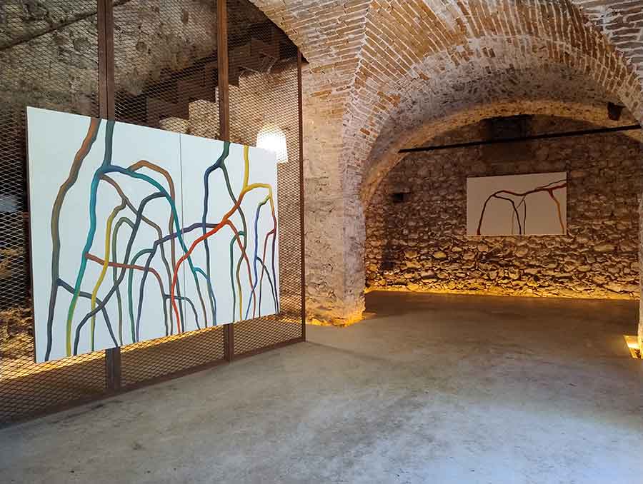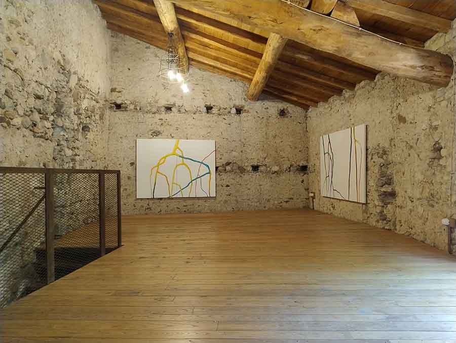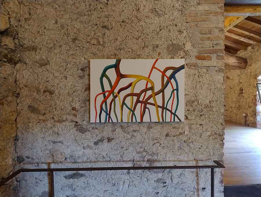 Dario Bellini presenta una serie di dipinti che nascono con l’intento di trovare un’immagine portante per la scultura teatrale e prendono una vita tutta loro. Si tratta di 8 dipinti di varie dimensioni (6 olio su tela e 2 acquerelli) che trasformano intrecci e intersezioni naturali in nuove geometrie cariche di colore e di vita.